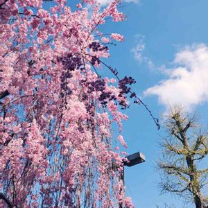 垂れ桜と青空と銀杏木