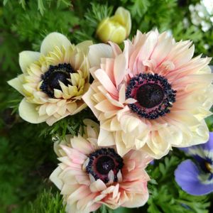 種蒔き組🌿💙ネモフィラ💙🌿咲きました~🤗 🌿🖤ペニーブラック🖤🌿が先に開くと思ってましたよ~🤔 こちらも種蒔き組🌿💜紫ハナナ💜🌿❔満開です🤗 🤍ガーデンシクラメン🤍も🤗