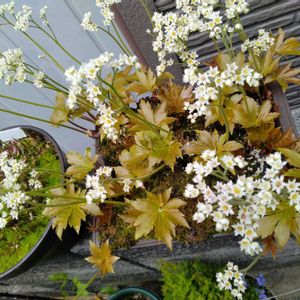 こんにちは~🙋 今年も咲きました〜🤗 🌿🤍岩ヤツデ🤍🌿丹頂草🌿 隣は🌿🤍姫ギボウシ🤍🌿の🌱🌱🌱🌱