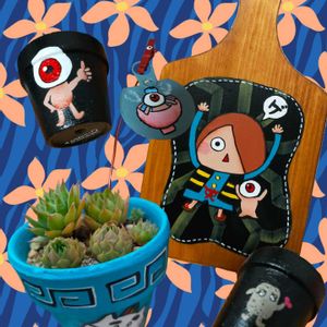 1〜3枚目 みたりんさんから、てんこ盛りのプレゼントが届きました〜♪☺💝💕💕 1枚目 鬼太郎&オヤシBoardに目玉オヤジ鉢、後ろは塗り壁🤣♪目玉オヤシがお碗のお風呂に入っている缶のフタピック?!🤣🤣🎶 以前、みたりんさんから頂いたニャンコラーメン鉢でニャンニャン祭りにも参加🎶中の多肉はセンペルちゃん! 2枚目 アヒルに乗ったオヤジ鉢!!私が作ったアヒルに乗ったオヤジを鉢に描いてくれました〜☺💕嬉しい〜ヽ(^。^)ノ お散歩で見かけたサボテンのお花も一緒に〜💕 そして名古屋ご当地のしあがってる金鯱🤣にロバート秋山に似ている顔転生のタランチュラとスズメ🤣🤣🎶 3枚目 てんこ盛りの🎁💕💕 お菓子も沢山頂きました〜😋 みたりんさん、いつも優しいお心遣いありがとうございます_(_^_)_♡♡♡ 繋がりに感謝🙏💕💕