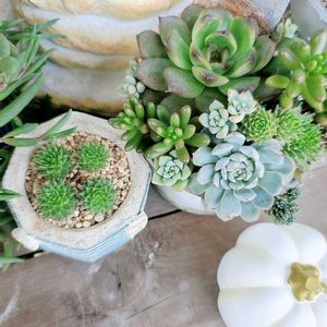 もう今日はかき氷作りましたー💦 日差しガンガンの中 多肉事…暑すぎです(⑅˃◡˂⑅) 真夏なら即退散だけど もう10月だよ?? 多肉日和なはず…って 出たり入ったり 寄せ植えからぶらさがってた センペルのお子さんを 外してみましたꕤ*。゚