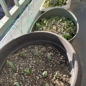 チューリップ🌷 3鉢とも、ニョキニョキしてきました✨