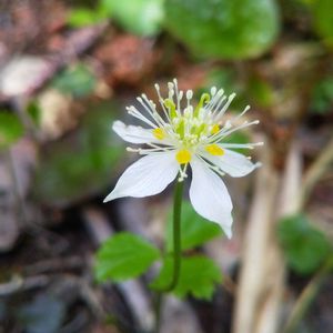 キヌガサソウを見つけ感動していたら、そばにはサンカヨウのお花も✨🤍🌿 歩き初めた所では終わっていて、がっかりしていたので綺麗に咲くお花を見つけ嬉しくなりました(◠‿◠) サンカヨウ…メギ科サンカヨウ属の多年草 雨水などの水分を含むと花びらが透明に見えることから、別名「ガラス花」というそうです。 ④シラネアオイのお花も見つけました💜🌿 栂池自然園にて…その4