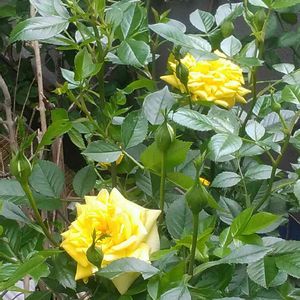 こんにちは☀ 黄色い💛ミニ薔薇🌹咲き始めました💕💕 名前無いので「イェローズ💛」って 勝手に命名😄🎵🎵 イェちゃん蕾の中に埋もれてます(*^^*ゞ🎵