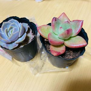 お迎えしてから、1年6ヶ月のアボカドクリーム🥑 緑色だったのに、紅葉して、かわいいお色になりました💖 奥は親株、手前は葉挿しっ子👍