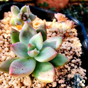 同じ様な大きさの肉厚な子たちを一緒に寄植え🪴 ----------------------------------------- 紫麗殿は緑のままだしパッカーん...(´・ω・ `)ンー... 鉢は減らせて良かったかな🌿