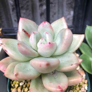 我が家の多肉植物 No.56 アボカドクリーム パステルグリーンのムチムチぷっくりさん 形が少し歪ですが、今年の色付きに期待します( ^ω^ )