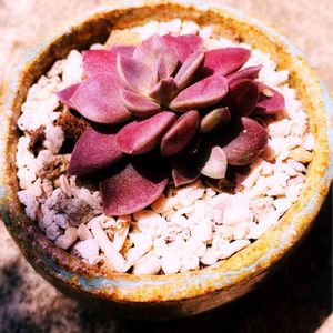 我が家に来たばっかりに、可哀想な結果になってしまった多肉を植え替えする事に… 第2弾🌱🌱 薄紫💜×黒🖤の寄せ植えをいつかしたく、今やっと完成 サブセシリスのお化粧が、復活しますように 鉢は昨日、信楽で購入 鉢の色もほんのりラベンダー色💜