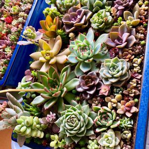 朝日を浴びて 一段ときれいになったので 朝、外に出す前に一枚❣️ 出し入れのため 数ヶ月間買い集めた子達を 大きい盆栽鉢に植え替えて見ました☺️♪ 鉢の深さ6cmあまり、 かなり浅めなので ちょっと心配でしたが 2週間ほど経っても まだ元気です😄🎶