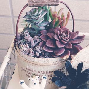 ようやく植え替えできました✨ 苦手な寄せ植え…ですが、 なんとか、、 この可愛い木箱におさまりました💓