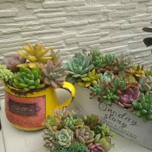 他の子たちも一緒の鉢に植えてみました。 お名前不明の子2名は、同じ種類なんじゃないかって疑ってます。 ご近所の目もあるので、植えながら心の中で「あ〜〜かわいい💕」って悶えてました笑