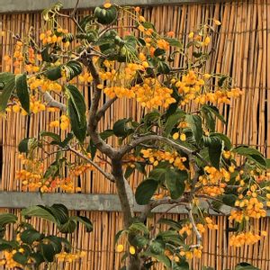 名古屋城の盆栽展 ①②③④ 🟡風鈴ガマズミ 🟠老爺柿 💓マユミ 🟤アケビ 丹精された作品が見事でした🌳🌳 その中で👀目を惹く美しい実物たち