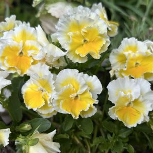 パンジーフリルフロマージュ 豊明市場×GreenSnap商品タイアップ企画。モニターキャンペーンに当選しました フリルがとても細かくて、可愛らしいです。 ヌーヴェルヴァーグや、アントワネットのようなフリルではなくて、もっと細かい花弁。 白やピンクの花に囲まれるとお似合いかな。 大事に育てます♪