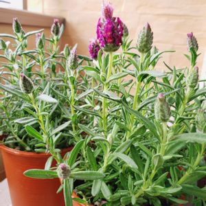 フレンチラベンダー♡︎ 前から育ててみたかったのでホームセンターで4号鉢2つ購入してみました。 値札シールには「キュー」と書いてあったので、キューレッド…でしょうかね? 蕾がモリモリ!!! とってもいい香りで、可愛らしいです(*^^*) 追記:値札シールよーく見たら、レッドと小さく書いてありました(笑) ってことで、やっぱりキューレッドですね♪