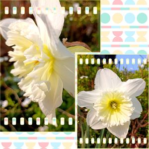 ②③白の寄せ植え 🌷以外は開花 立派なスイセンでした 🏷️ペコちゃん祭り🏷️お野菜キャラ 🏷️コラージュして遊ぼ♡🏷️コラージュ仲間達 参加します