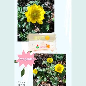 母の地植え 福寿草 あっという間に3輪咲きました 🏷️コラージュして遊ぼ♡ 参加します 色々遊んでみました(o^・^o)
