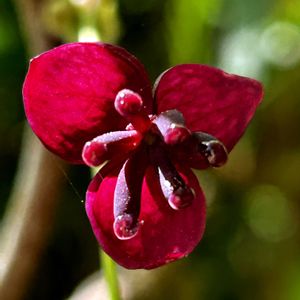 ゴヨウアケビ(五葉木通) アケビ科 同属 アケビとミツバアケビの自然雑種のゴヨウアケビの花が咲いていました 蔓性落葉低木 赤紫色の雄花と雌花で、ミツバアケビとよく似ています 葉は3〜5枚で波を打ったような鋸歯があります アケビの葉は全縁でギザギザのない楕円形の葉、ミツバアケビは3枚の三つ葉です ここにはアケビとミツバアケビの木があり、両親がいるようです アケビの白い花は見つけましたが、ミツバアケビの花は見つけられませんが