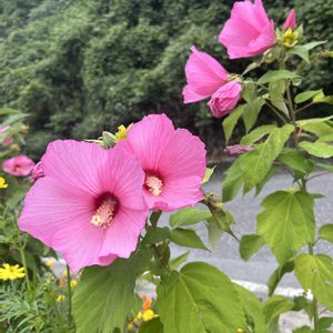 今日のお花🌸フヨウ🌸 1️⃣芙蓉 🌸アオイ科 フヨウ属の落葉低木 中国原産 雌蕊の先が曲がる特徴がある 葉は手のひらの形で浅く3〜7に裂ける 枯れた後の姿も印象的で「枯芙蓉」と言う 昔から美しい人の例えとして用いられ、美しくしとやかな顔立ちを「芙蓉の顔」と言う 8/9山の温泉地で 2️⃣3️⃣タカサゴフヨウ(高砂芙蓉) 別名 ヤノネボンテカ(矢の根梵天花) 草本性低木で南アメリカ原産 湖周りの湿地で 4️⃣スイフヨウ(酔芙蓉) 朝には白、昼はピンク色、夕方には紅色になる事から酔っぱらっている様に見える事が名前の由来 中国原産の落葉低木 川沿いで 🌸いずれも一日花で朝に咲き夕方に萎む花