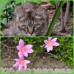 夜中にスミマセン、にゃんにゃん祭りに参加しまーす。😃✌️ 我が家に来るノラちゃんでーす🤭 下はゼフィランサスでーす。🎉✨😆✨🎊