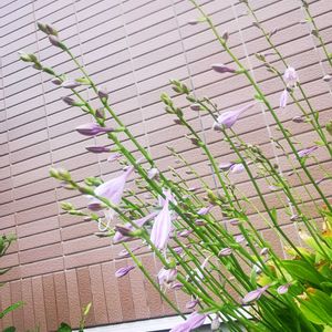 ギボウシ 夏の終わり頃には 猛暑✨☀️✨で 葉先が枯れてます🌿🍂 それでも花芽を 伸ばして 薄紫の花を咲かせます