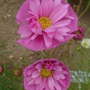 こんにちは🤗 零れ種からの、カップ咲きコスモス💕 もっと増えてくれるといいな 今日は涼しくて庭いじりにぴったり🎵今週は過ごしやすそうなので、花壇作りがはかどるといいな