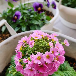 こんにちは☁️ 寒くなりました プリムラとビオラです 丸く咲くプリムラが可愛いです💕💕