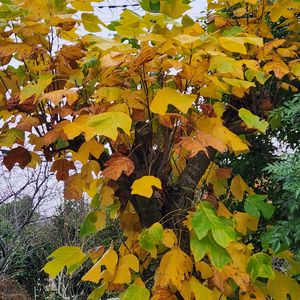 今年は庭で黄葉と紅葉🍁が見られて嬉しい😃🎶です ユリノキですが13年花が咲かないの 鳥🐦さんが落とした種からハゼの木が紅葉🍁しています