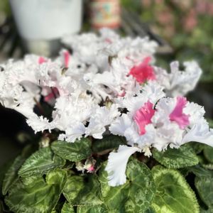 シクラメン 天使の羽のような 白いフリルが可愛らしいです 寒波の中 雪❄️もちらほらと… 🏷️チーム茨城 けいちゃんさんからお誘い いただき初参加します♪