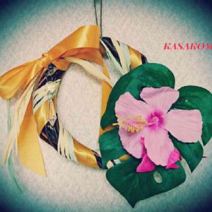 神戸の菓子工房パオデロさんのお菓子を頂きました😋💕 あまりにも箱も包装紙もラッピングも可愛すぎて捨てられず、ラッピングに使われていたリボン等をリースにアレンジしてみました☺︎︎ 透明なので見えにくいですが、リボンの下のビーズの飾りは、寝室の照明の飾りが電球にくっついて溶けてちぎれてしまったので挿してみました☺︎︎ 材料費リースの土台のみの108円😝💫