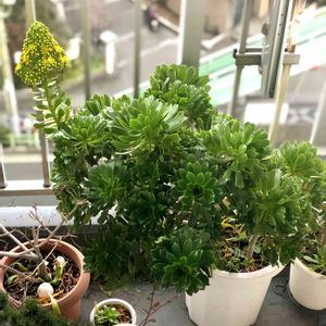 この春ご近所さんから頂いて5/26に投稿したアエオニウム。久しぶりに写真撮ってみて結構大きくなってる事に気付いた。😃👐 葉がぶわ〜っと広がってヤシの木みたいです。🌴 これ黒法師という事で貰ったんですが、ネット見てるともう少し葉が短くて真っ黒い子の事をそう呼ぶような…。本当のところ、これは何という子なのかしら〜?🤔