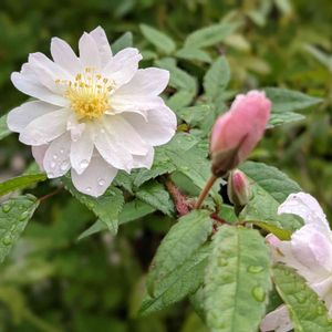 お写真は2021.8.21。 今もまだ ドロシーパーキンスが 返り咲きしています♪ 次から次に枝先に蕾を持ち、 グリーンの中に彩りを🌹