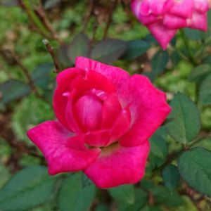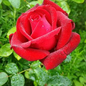 こんばんは🌙 イングリッドバーグマン 梅雨空の中咲いていました🌹 綺麗です☺