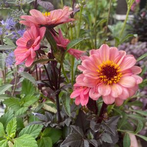 こんばんは🌆 プチダリア ハミングブロンズ エタニティ ブロンズ色の葉とアプリコット色のお花がなんともステキなプチダリア
