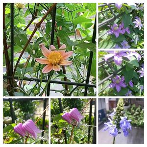😹晴れた~☀️.° My 🦄 Garden𓆸*𓂃𓈒✨💕 ୨୧⑅*(💓˘͈ᵕ ˘ㅅ˘͈ᵕ ˘💓)୨୧⑅* 🐞🐝初夏の雰囲気に🌺🌿 なって🥤きましたねぇ(*ฅ́˘ฅ̀*)♡ 😸今年も💞咲いてくれた 🏷プチ🏵ダリアchan 🏷ボッグ💙セージ🌿✨ 😻この春🌸仲間入り🎶🎶 🏷🔔型クレマチス アナベラ💖 🏷クレマチス 💙ユスタ💜 (ꕤ୭ᴗ͈ˬᴗ͈)