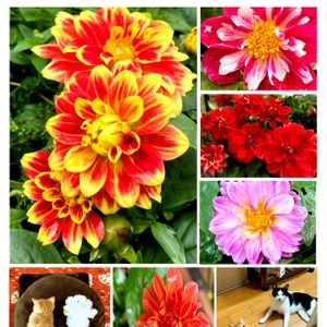 みちのすけさんの 🏷ニャンニャン祭りに 庭の5色のダリアと モカ&ダルで参加します💕 小さな頃のモカも載せてみました🤣 こんなに可愛かったのねぇ〜😆 今も可愛いけど😅 太って見えるアングル〜😱