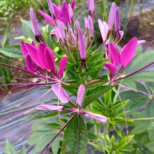 今晩は 大好きなクレオメ 種から育てました 水が足りないのですね 花びらが丸くなっていきます 頑張ってほしいですね(⊃>~<⊂)꒰ა♡໒꒱