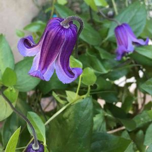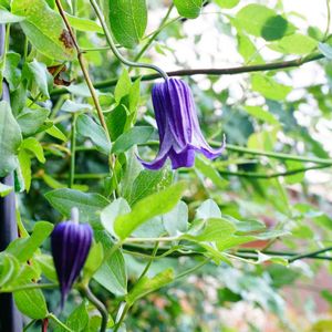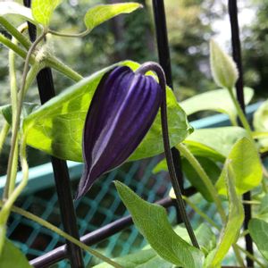 インテグフォリア系クレマチス ロウグチ** 3年目だったかな? 新枝咲きのお手入れ簡単タイプ 切り花にも良くて とってもお気に入り🌟 でも… ナス🍆のヘタに見えてしまう🤣🤣