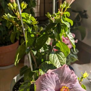 ハイビスカス ケイト🌺 我が家に迎えて、どれだけ咲いてくれたでしょうか😊 まだ、ツボミが6個程あります これも窓辺に置いています🌿🥰
