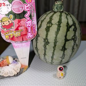 今年初で最後のスイカ あまりお世話出来なかったから仕方がない タネまで食べられるスイカとか? オヤジフェスで くたばったオヤジに食べさせよう👍💦 2枚目以降は前にも投稿しました月の雫ちゃま作製の ピータン達 みんな夏バテで コレクションケース中で お休み中です 今日は 試しにベランダに遮光つけたら やはり涼しいので 日当たりより 気温を下げる方を選びました 見てやる私が 涼しいし😁 ←それかーい😤