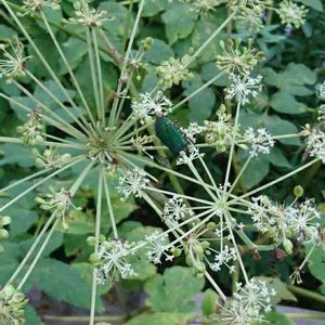 8/3のpic 箱根湿生花園 ウドの花 放射状に拡がって 虫も綱渡り
