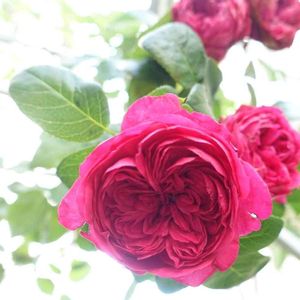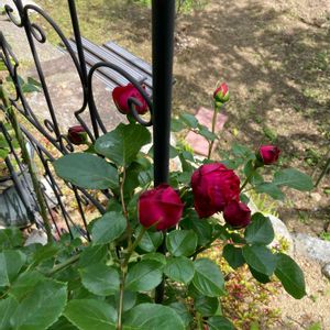 ルージュピエールドロンサールさです。フェンス仕立てにしてます。クレマチスさんと仲良くフェンスにくっついてます。クレマチスの紫紺とバラの赤色がいいコラボだと思います。クレマチスが咲いたらアップします。