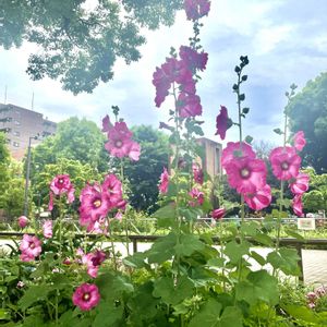 この季節になると あちらこちらに咲いてるホリホリックに目がいきます。 和名はタチアオイ。 ホリホリックって魔法の言葉みたいな響きがありますよね。 ♪ホリホリック〜ホリホリック 元気になーれ♪ 花姿も名前も元気をくれる ホリホリック。 @ヨコハマ公園通り
