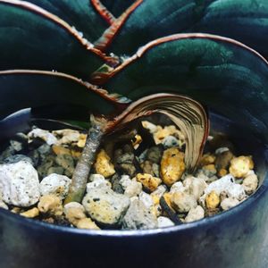 うちにきて数年のロリダ プラスチック鉢が劣化してボロボロなのに、姿は当時とあまり変わりなく・・・ オブジェのよう