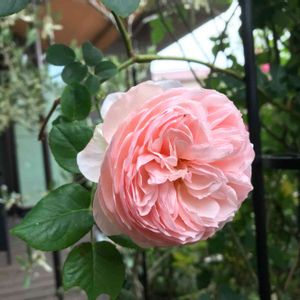友人から頂いたヘリテージが初咲き🌹可愛いピンクで花びらが何枚も傘なって素敵。