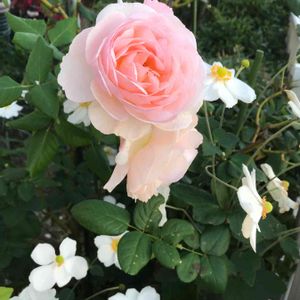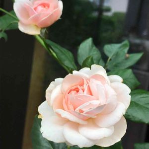 フレグラントアプリコット(*´꒳`*) 小さめですが咲きました。 嬉しいです…! すぐ側で、イングリッシュヘリテージや、その枝変わりのローズマリーの挿木苗にうどん粉病が出ているのですが、フレグラントアプリコットはツヤツヤです。