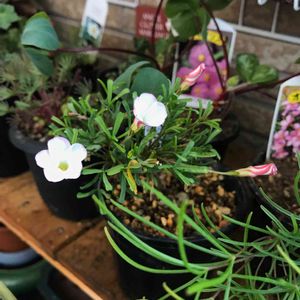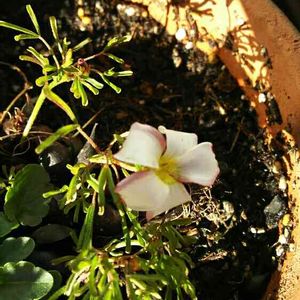 これは我が家のオキザリス パーシーカラーと、一見ビオラのこぼれ種っ子に見える…かもしれない雑草ちゃんです😅 うちのパーシーカラー、めっちゃ奥手ね😵