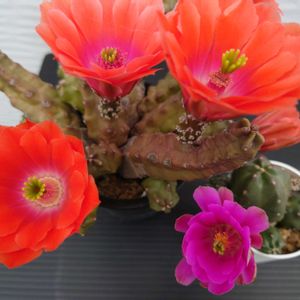 だいぶ前の載せ忘れ写真 桃太郎〜 同時に咲いたので お花の色違い 棘の無いサボテンですよ