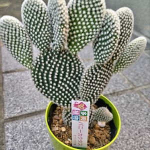 ① 🏷️今日のお花 ウチワサボテン バニーカクタス💚 2023.10/12pic 今も スクスク くねくね してます ②③ トウガンの花 ニョキニョキと 青空に 向かってます😁 ④⑤ イチジク 我が家の畑に 実ってきました