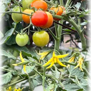 ②③デユランタ レペンス、6月からずっと咲いています ④⑤お隣の畑のミニトウガン、たくさん成っています