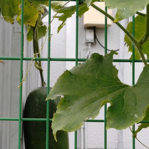 通りすがりの・・・謎の畑 冬瓜畑? 2枚目)直立。 3枚目)ぶら〜ん 丈夫な蔓。 夏が収穫期。冬まで保つから『冬瓜』 家庭用なのか、売る予定だったのか、実は必要な時に収穫して食べるのか。 そもそも、種から勝手に出来たとか? もう少し早ければ、イチョウの葉が鮮やかな黄色で映えたかな。 追記)見すぎて卵に見えてきたわ🤯 想像してみてください🫣何が産まれる?😣